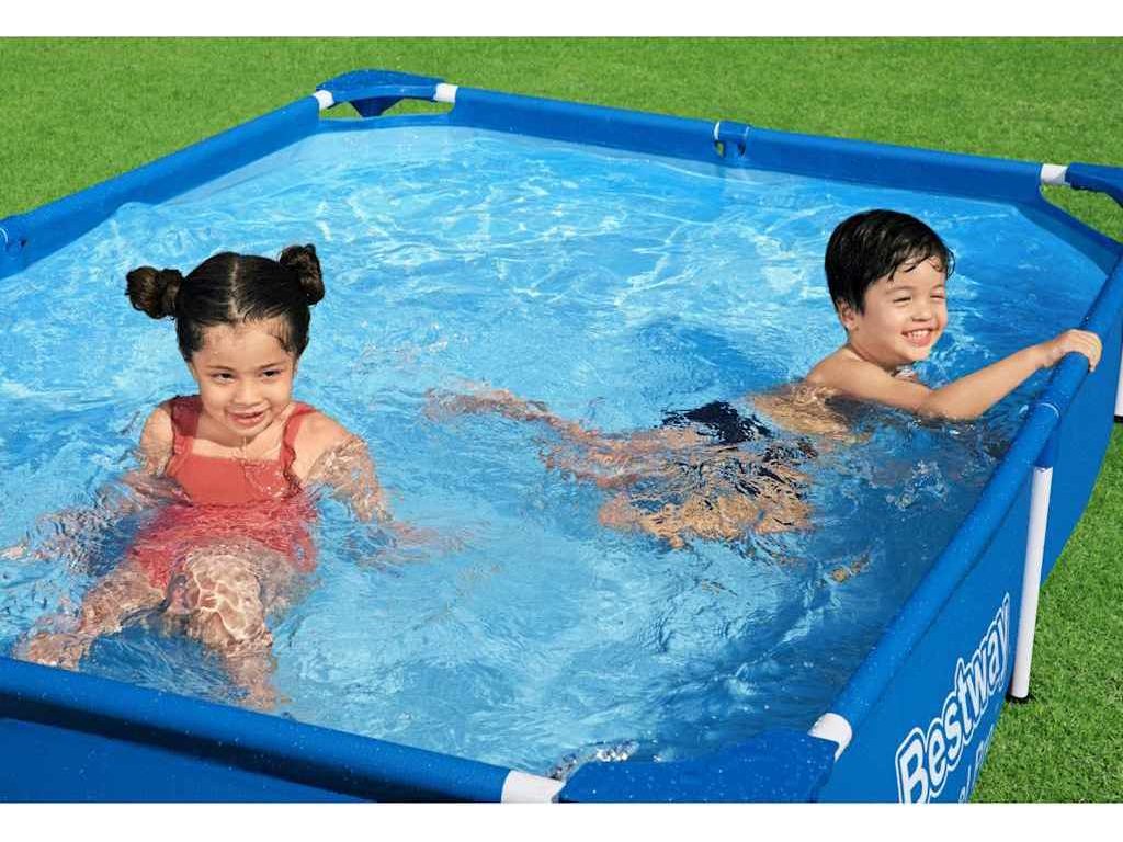 Výjimečně silné boční stěny tohoto bazénu jsou vyrobeny z 3vrstvého vyztuženého materiálu z laminovaného odolného PVC a polyesterové síťoviny, takže nabízejí vynikající pevnost a odolnost. Tento nadzemní bazén má ocelový rám nepodléhající korozi. Jelikož je vybaven vestavěným vypouštěcím ventilem s regulací průtoku, lze vodu snadno vypustit. Nadzemní bazén postavíte snadno a rychle. Jednoduše umístěte bazén na rovnou plochu, sestavte celý rám a potom naplňte bazén vodou. Bazén lze také snadno složit pro skladování a přepravu.