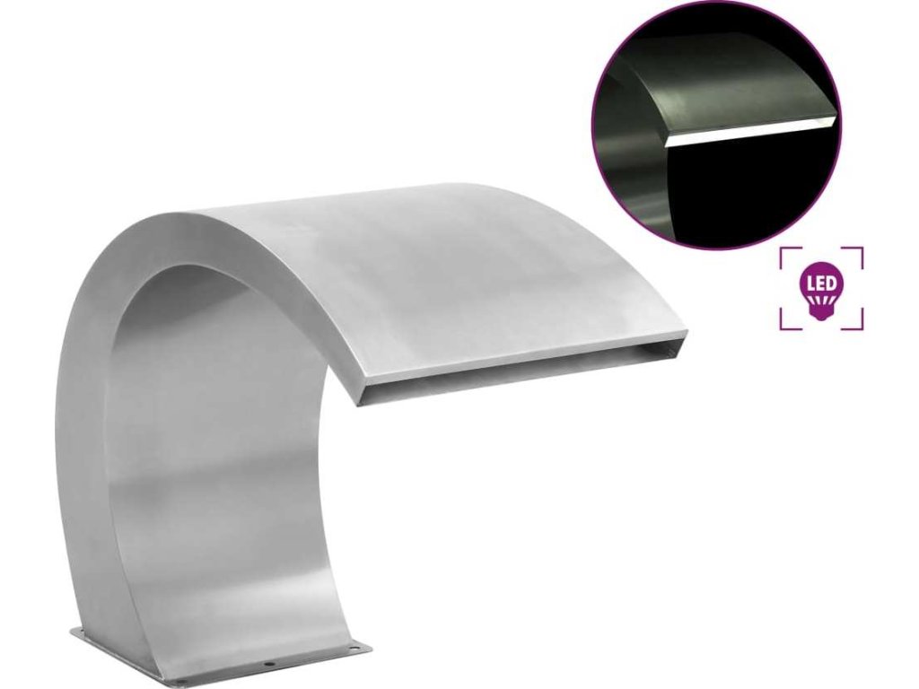 Produkt je vyrobený z prvotřídní nerezové oceli a je odolný vůči chloru a má velmi dlouhou životnost. Je speciálně navržený tak, aby zaručoval nepřetržitý a rovnoměrný průtok vody. Kaskáda je doplněná LED světly, jejichž zástrčka je součástí balení.