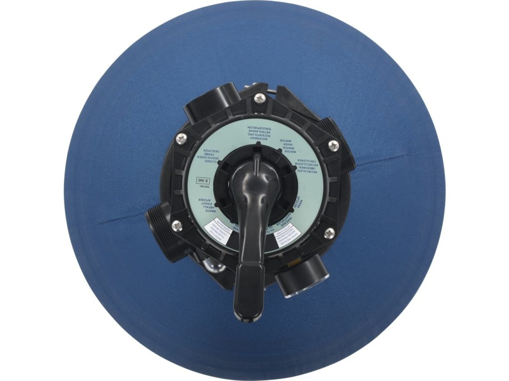 Tato písková filtrace, vyrobená z vysoce kvalitního polyetylenu s vysokou hustotou, má velmi dlouhou životnost. Design filtru umožňuje dosahovat míry průtoku 10 m³/h. Maximální pracovní tlak je 50 PSI. K zahájení provozu je zapotřebí 100 kg filtračního písku (není součástí dodávky). Filtr je vybaven vícecestným ventilem se 6 polohami: filtrace (pro filtraci objemu vody), proplach (pro čištění filtračního média), výplach (pro vyplachování filtračního systému), zimní režim (pro zazimování), obtok (pro připojení přímo k bazénu/vířivce bez zapojení filtračního lůžka) a uzavření (pro vypnutí veškerého průtoku vody do filtru).