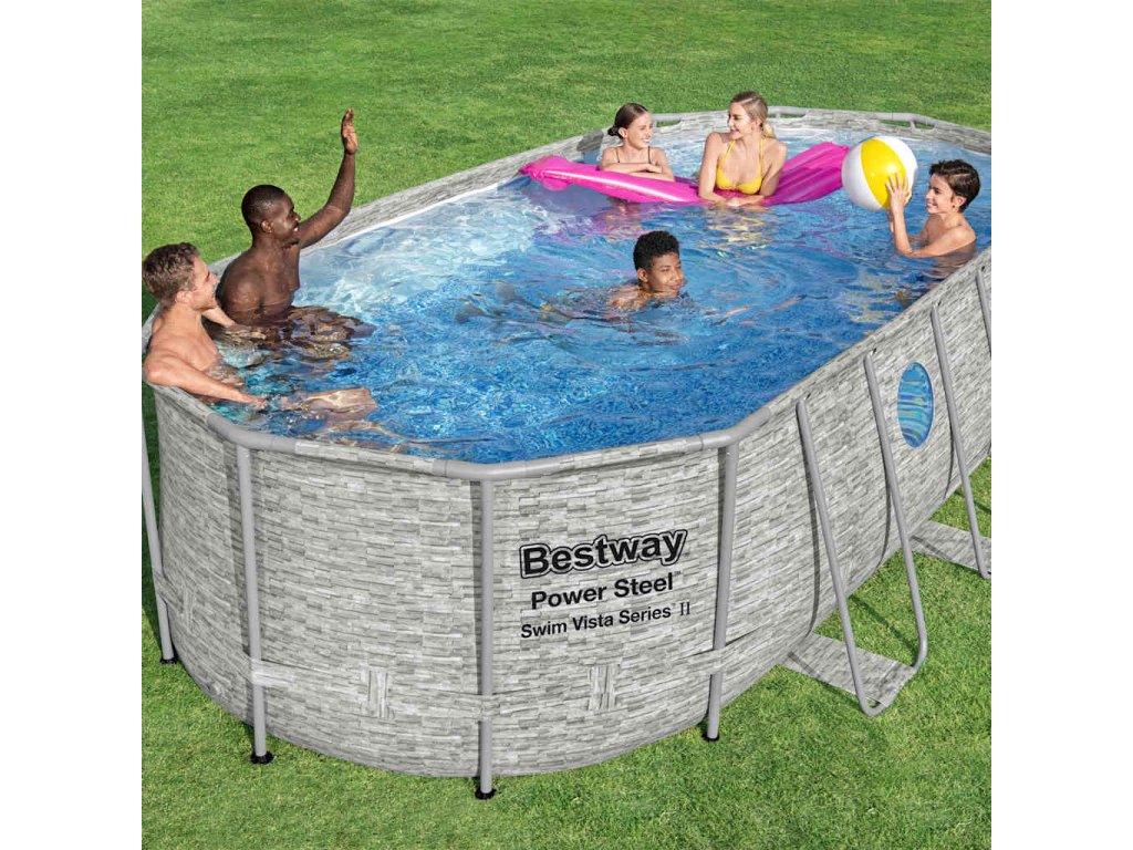 S touto bazénovou sadou Bestway Power Steel Swim Vista Series si na vaší zahradě nebo dvorku užijete spoustu zábavy s rodinou a přáteli.