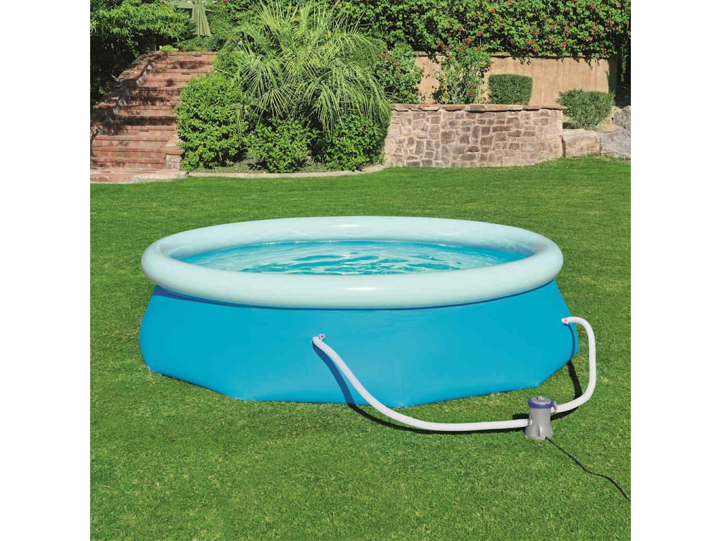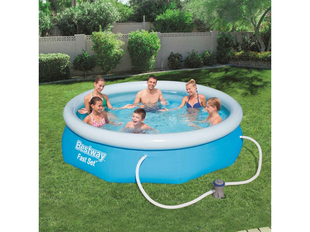Bazénový set Bestway Fast Set 57270 s nafukovacím okrajem bazénu nabízí velmi šikovné řešení pro letní koupání na zahradě.