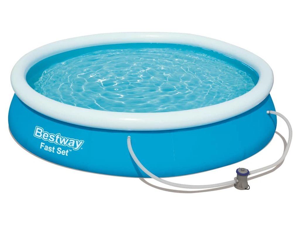Bazénový set Bestway Fast Set 57274 s nafukovacím okrajem bazénu nabízí velmi šikovné řešení pro letní koupání na zahradě.