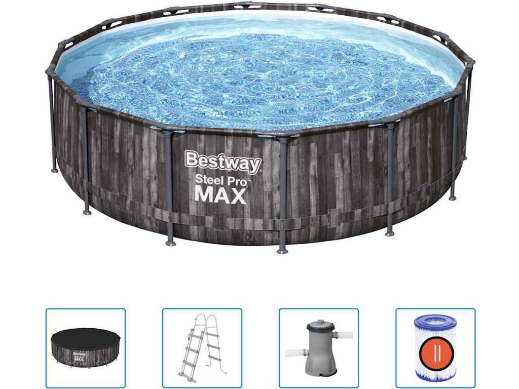 Užijte si se svou rodinou a přáteli spoustu zábavy v tomto bazénu Bestway Steel Pro MAX.