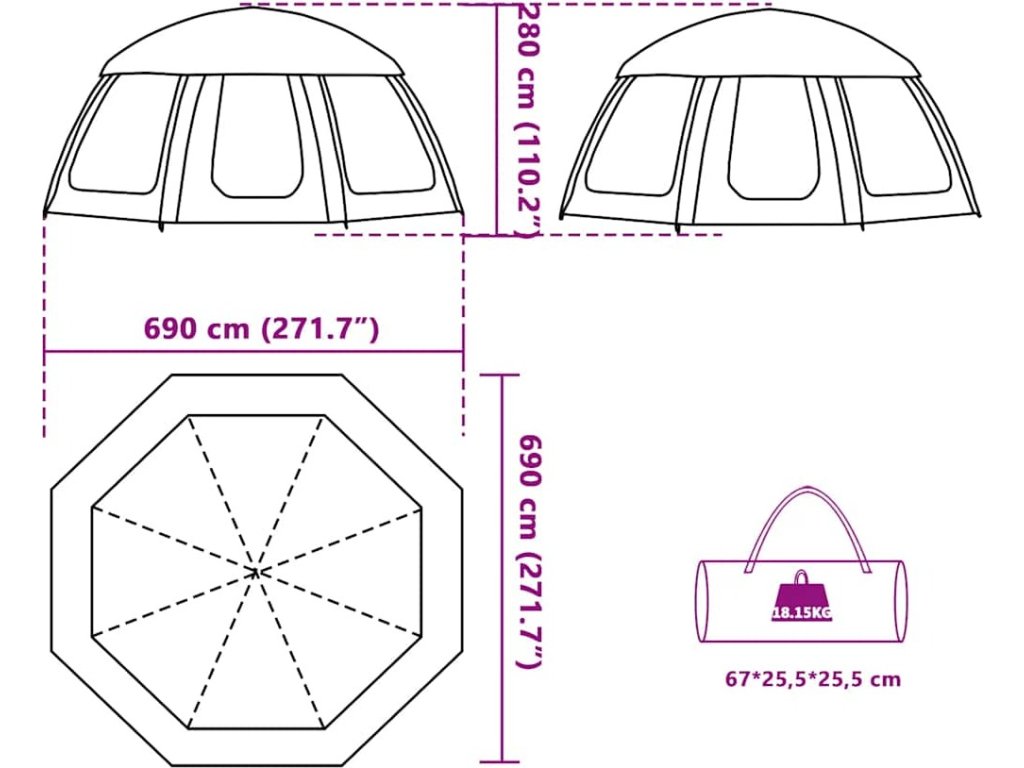 - Multifunkční stan: Tento stan poskytuje přístřeší pro bazén a zároveň slouží pro různé potřeby, jako je rodinné kempování, pikniky, večírky, venkovní stolování a další.