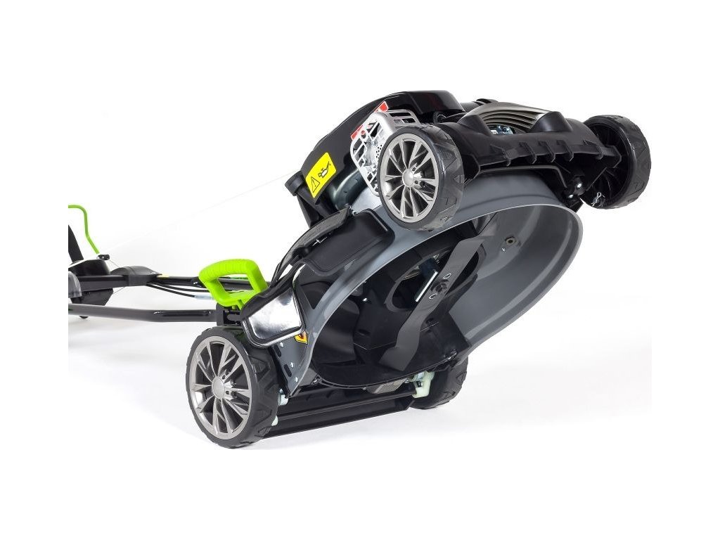 Vyztužené tělo sekačky je odolné vůči korozi. Měkčené a ergonomicky tvarované rukojeti zaručují pohodlí při práci. Díky kolečkům s nylonovými ložisky se vám se sekačkou dobře manipuluje i v náročném terénu. Pod madlem najdete panel s přihrádkou na nápoj nebo nějakou drobnost.