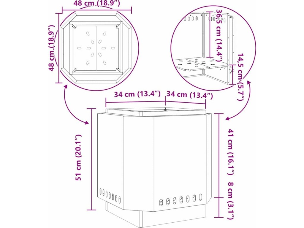 - Stylový moderní design: Minimalistický vzhled dělá ohniště skvělým doplňkem pro moderní prostor. Jeho čisté linie a decentní detaily jsou elegantní a zapadnou do jakéhokoliv venkovního uspořádání, aniž by to přehánělo.