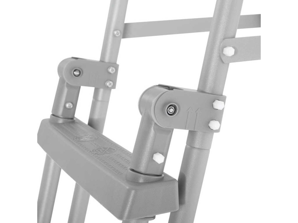 Bazénové schůdky se 4 stupínky mají odolný nerezový kovový rám. K rámu jsou pevně připevněné protiskluzové a robustní plastové schůdky, které vám poskytnou bezpečnou cestu do bazénu i z něj. Žebřík je navíc vybavený platformou s ochrannými destičkami a 2 silnými madly. Schůdky na vnější straně bazénu můžete složit, aby děti bez vašeho vědomí vstupovaly do bazénu. Snadno tak předejdete nehodám.