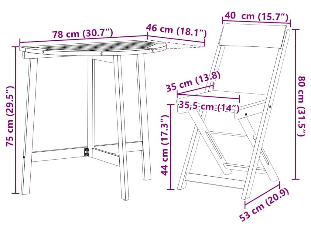 Tento Bistro Set je skvělý doplněk k jakékoliv zahradě nebo terase, ideální pro snídani na sluníčku nebo večerní drink. Sestavený z kvalitního akáciového dřeva, tenhle set se pyšní moderním stylem, jednoduchými liniemi a praktičností. Ať už hostíte přátele nebo si užíváte chvilku pro sebe, tento Bistro Set je pohodlný a stylový, skvěle se hodí kamkoliv do venkovního stylingu.
