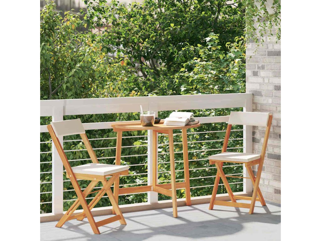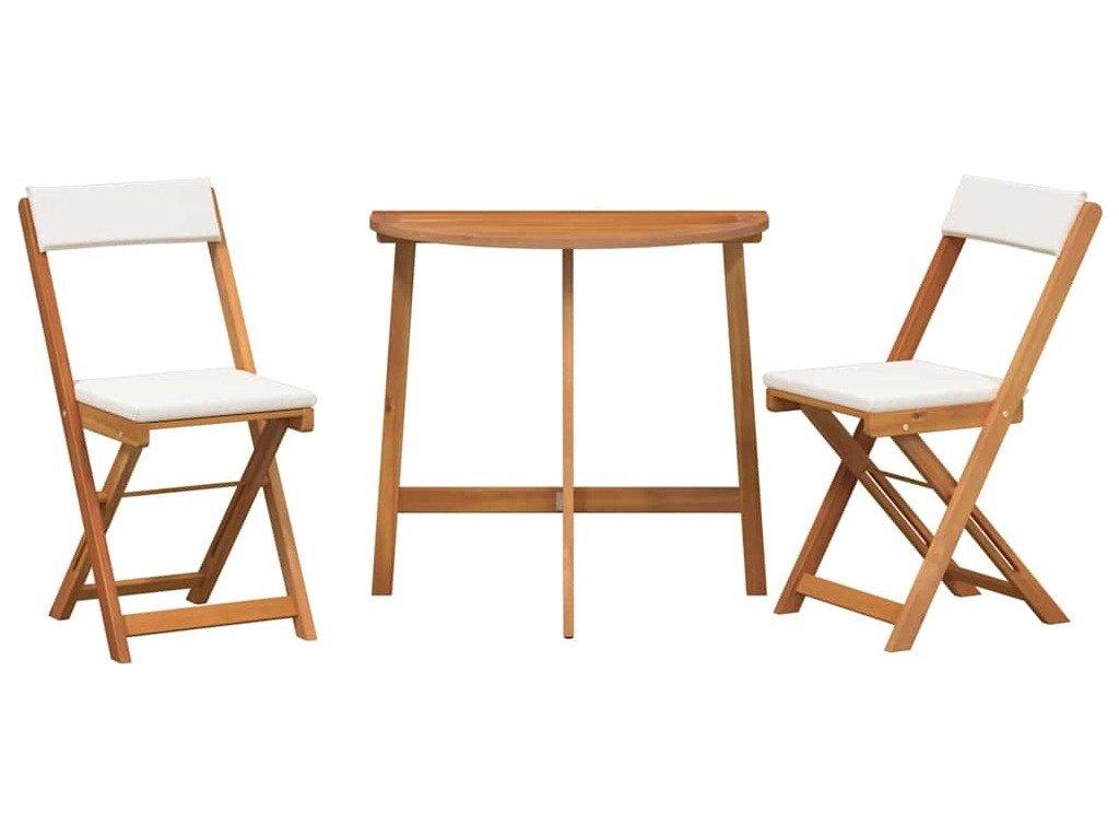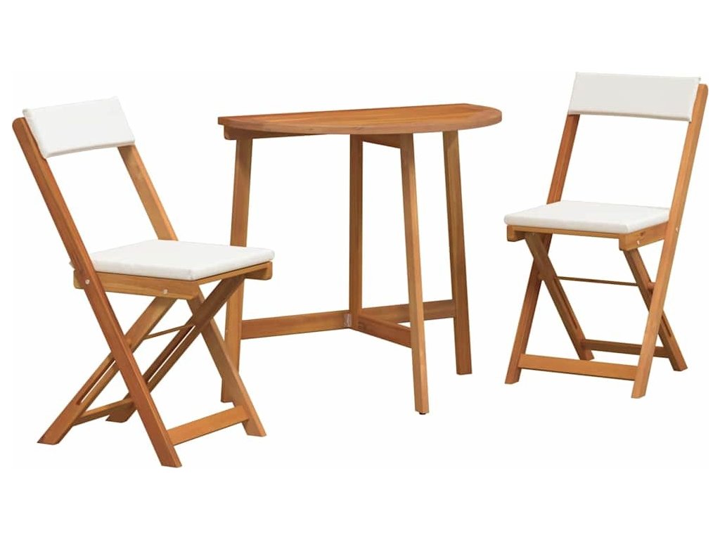 - Materiály: Tento Bistro Set je promyšleně vyrobený z kvalitního akáciového dřeva, spojuje krásu přírody s trvanlivostí. Textura a hustota materiálu zvýrazňují jeho atraktivitu a vydrží každodennímu používání. Přírodní teplo dřeva se hezky hodí do venkovních prostor a dává příjemnou atmosféru pro setkání a odpočinek.