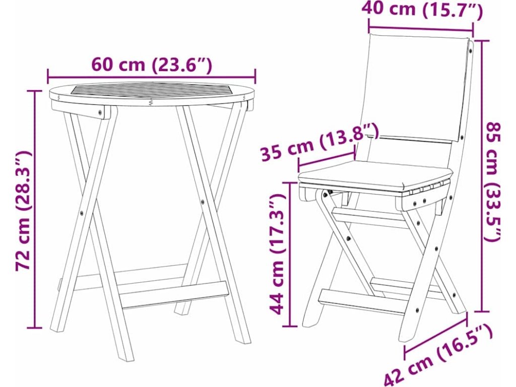 Tento skládací bistro set je skvělým doplňkem do jakéhokoli venkovního prostoru. Skvěle zapadne do zahrad nebo na terasy díky modernímu designu, který se zaměřuje na jednoduchost a funkčnost. Povrch z přírodního oleje zvýrazňuje krásnou strukturu akáciového dřeva, což mu dodává rustikální, ale elegantní styl. Ať už potřebujete místo pro snídani nebo klidné odpoledne, tento set zlepší atmosféru a nabídne praktickou užitečnost.