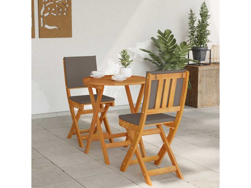 - Masivní akáciové dřevo: Tento bistro set je vyroben z masivního akáciového dřeva, které je odolné a odolává povětrnostním podmínkám. Olejovaný povrch ukazuje přírodní barvy dřeva a poskytuje ochranu proti vlhkosti. Tento materiál zaručuje, že set si svou krásu zachová i po dlouhé době, zatímco poskytuje pevné a spolehlivé sezení.