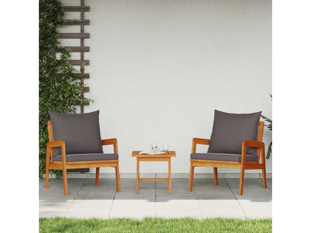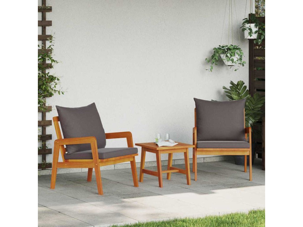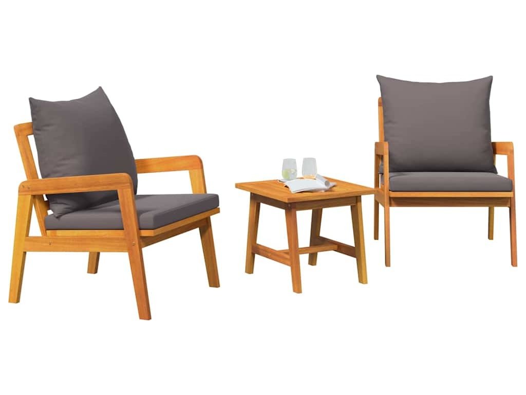 Bistro souprava s polštářem 3 pcs Hnědá Masivní akátové dřevo [4106460]
