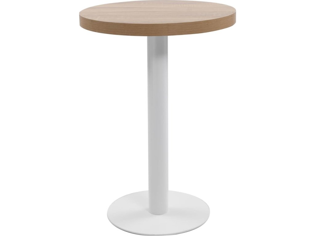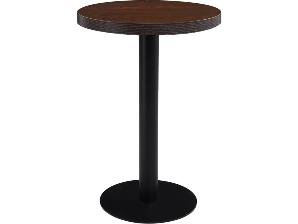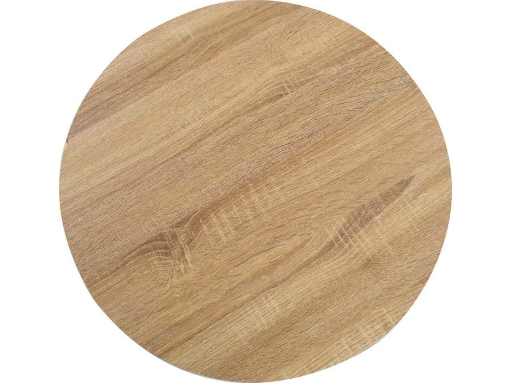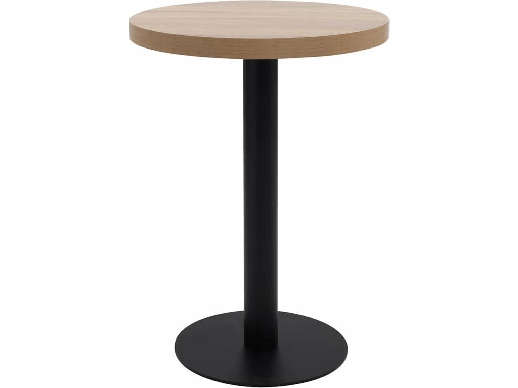 Horní deska stolu je vyrobená z MDF se vzorem dřevěné kresby a podpírá ji ocelová noha se základnou. Snadno ji očistíte vlhkým hadříkem. Stolek skvěle využijete jako samostatný kus nábytku ve svém bydlení, ale i v restauraci, kavárně nebo baru.