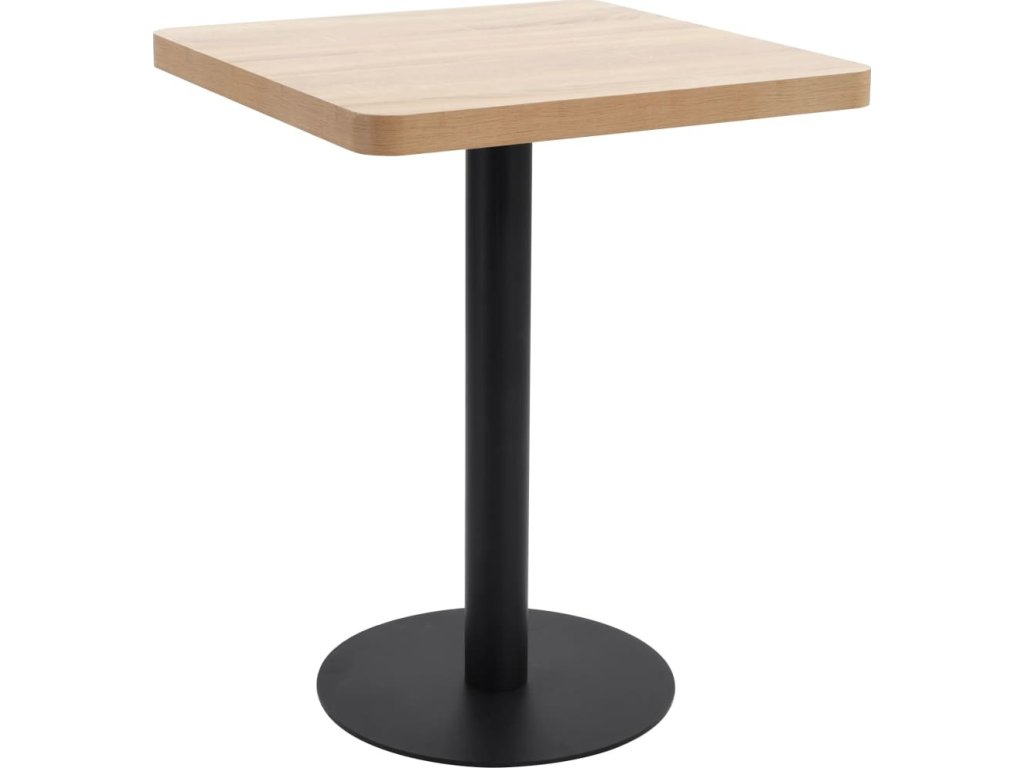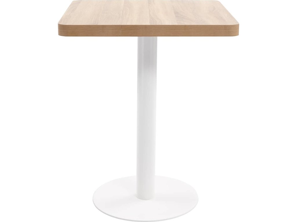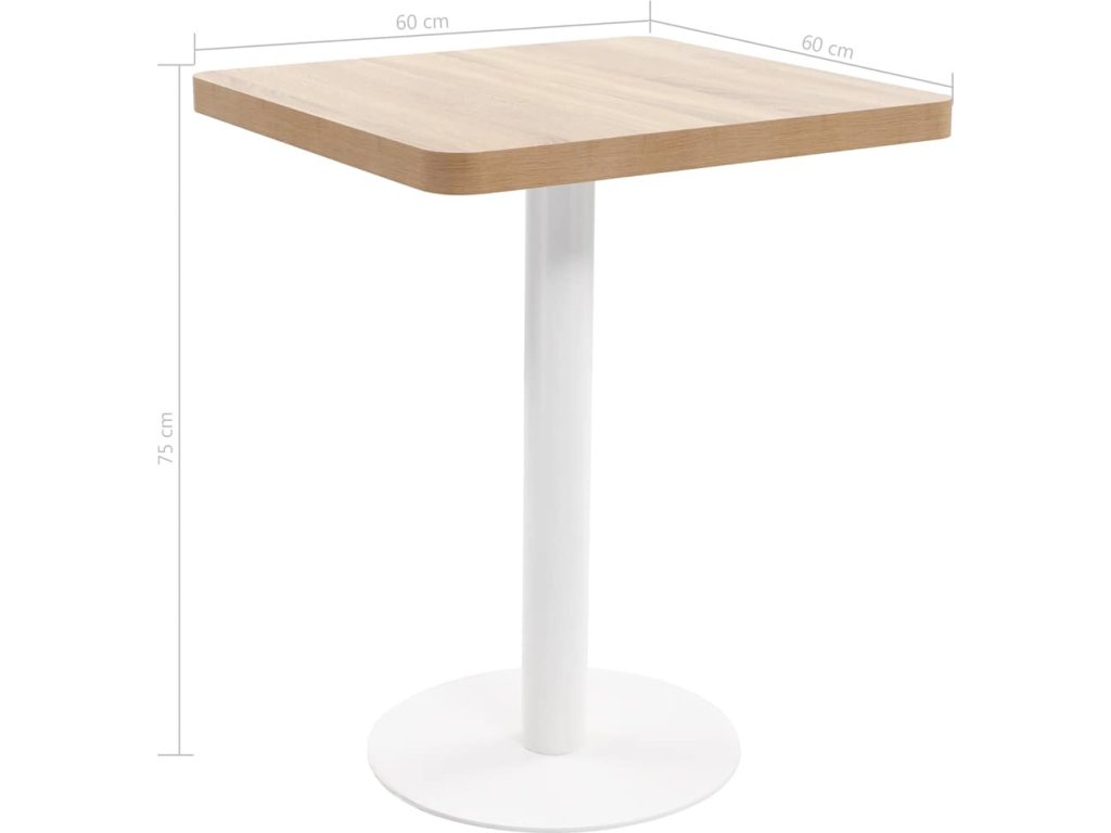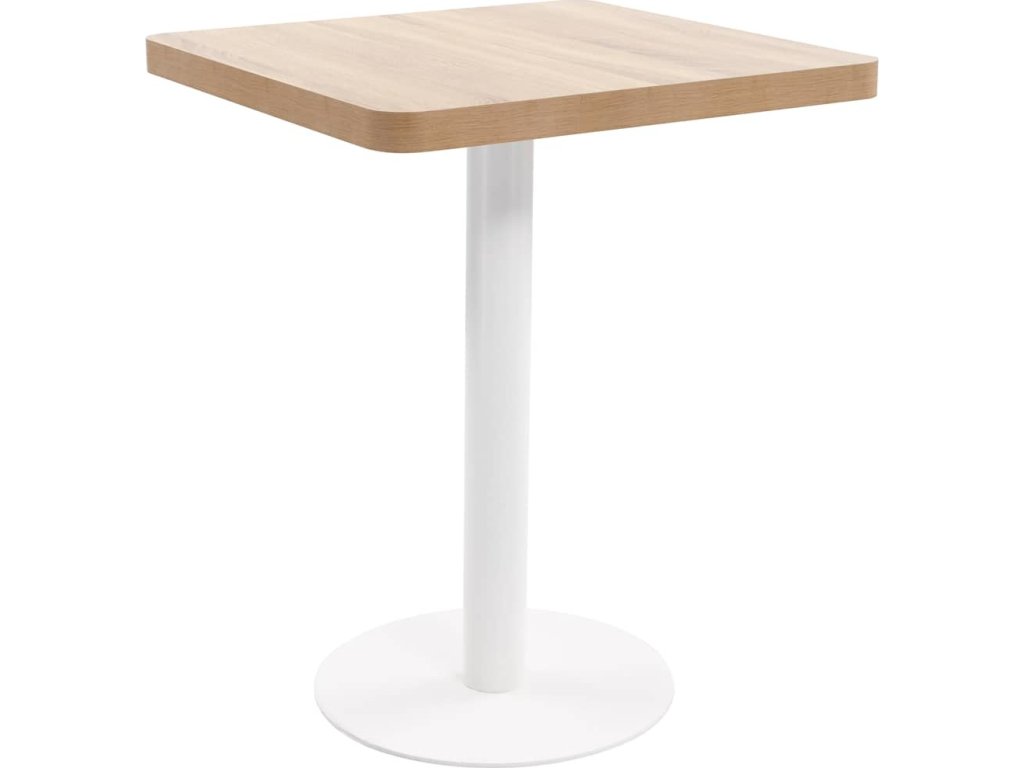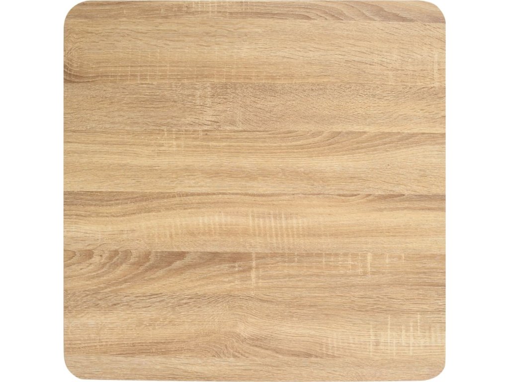 Horní deska stolu je vyrobená z MDF se vzorem dřevěné kresby a podpírá ji ocelová noha se základnou. Snadno ji očistíte vlhkým hadříkem. Stolek skvěle využijete jako samostatný kus nábytku ve svém bydlení, ale i v restauraci, kavárně nebo baru.