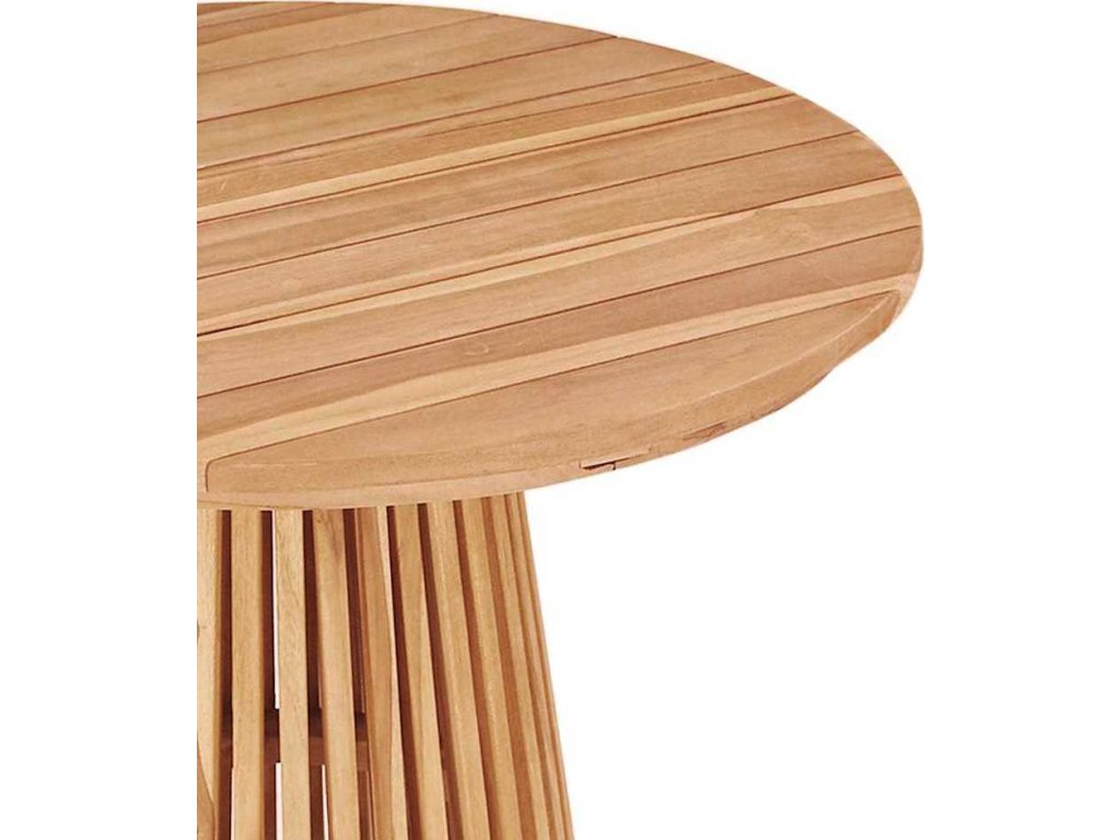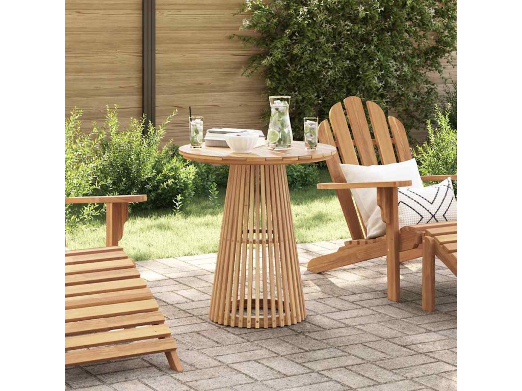 Tento kulatý venkovní boční stůl přináší do vaší zahrady nebo terasy špetku sofistikovanosti. Jeho moderní design s čistými liniemi a skromnou elegancí se hodí nejen ven, ale i dovnitř. Teplý přírodní teakový povrch zajišťuje uklidňující vzhled a skvěle ladí s venkovním nábytkem. Ať už trávíte slunečné odpoledne, nebo hostíte večerní setkání, tento stůl vám nabídne pohodlí se stylem a zlepší atmosféru venkovního prostoru.