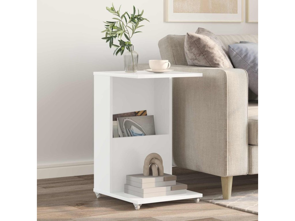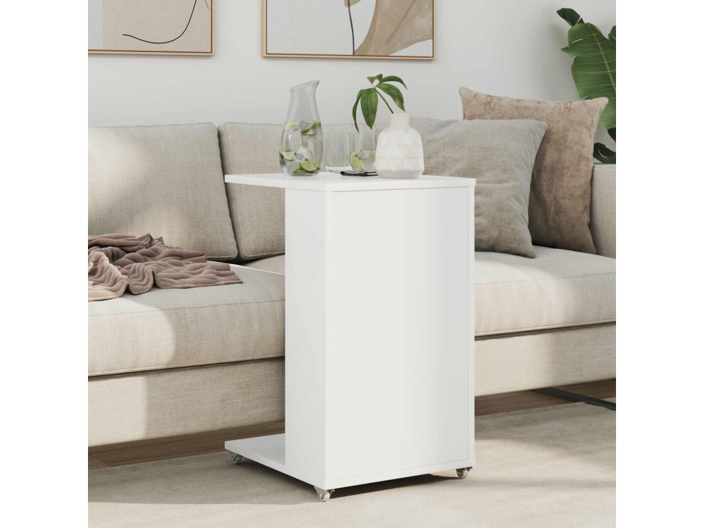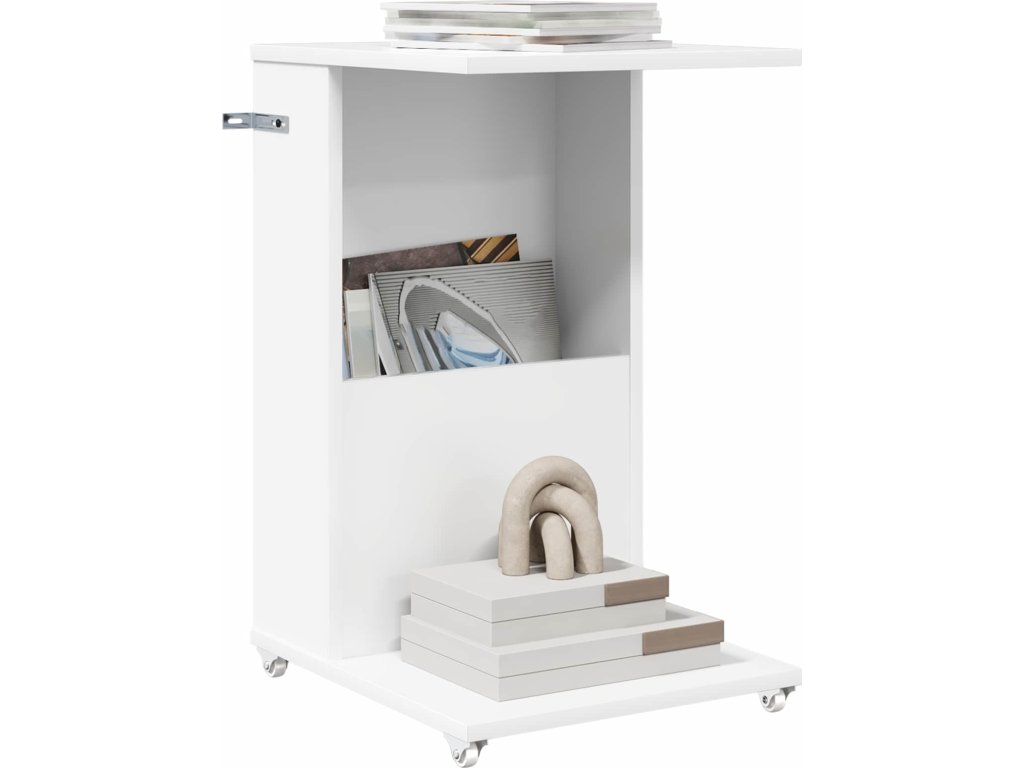 Boční stůl s kolem Bílá 40 x 35 x 60 cm kompozitní dřevo [8000372]