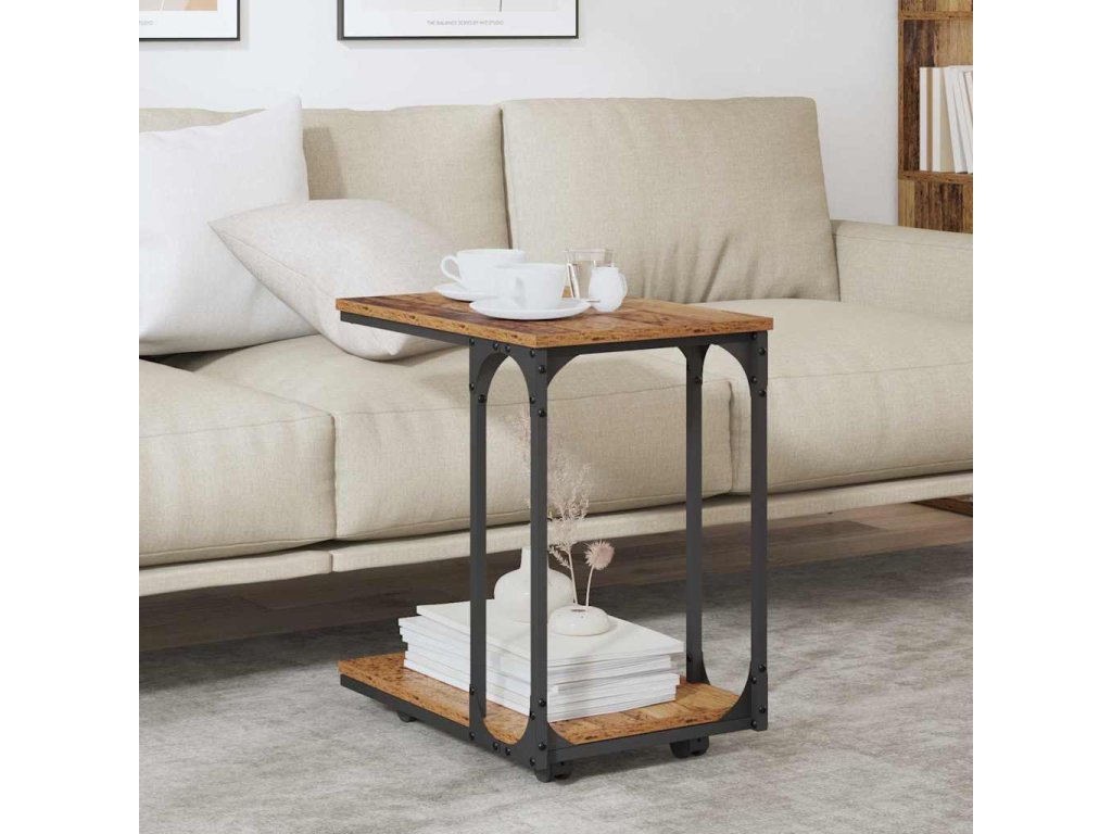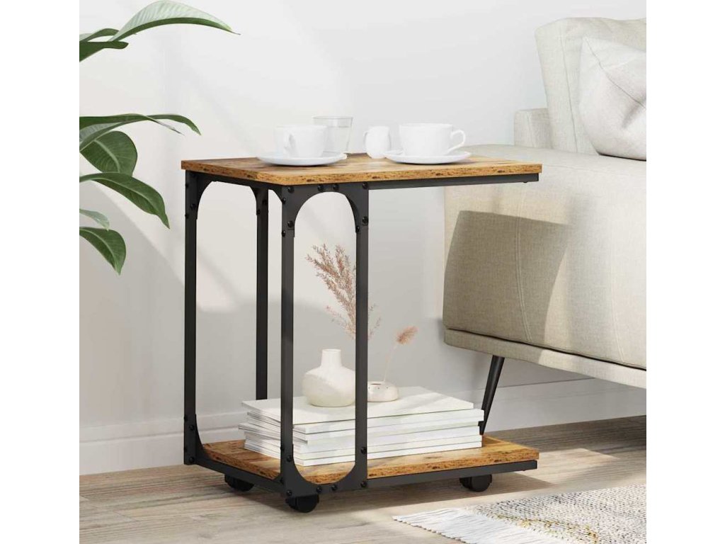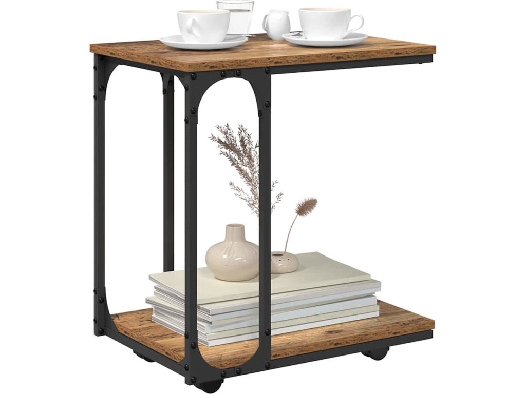 Tenhle C-kolečkový stůl přináší do tvého obývacího pokoje rustikální šmrnc a spojuje funkčnost se stylem. Díky teplému povrchu a kompaktním rozměrům je ideální volba do městských bytů, kde je každý centimetr cenný. Snadno se s ním manipuluje díky zámkovým kolečkům – můžeš ho bez námahy přesunout kamkoli potřebuješ. Je praktickým místem pro nápoje, lampy nebo dekorace a zároveň funguje jako úložné řešení. Povrch z kompozitního dřeva a kovový rám ti zaručují, že bude odolný a vydrží dlouhá léta zcela bez ztráty estetiky.