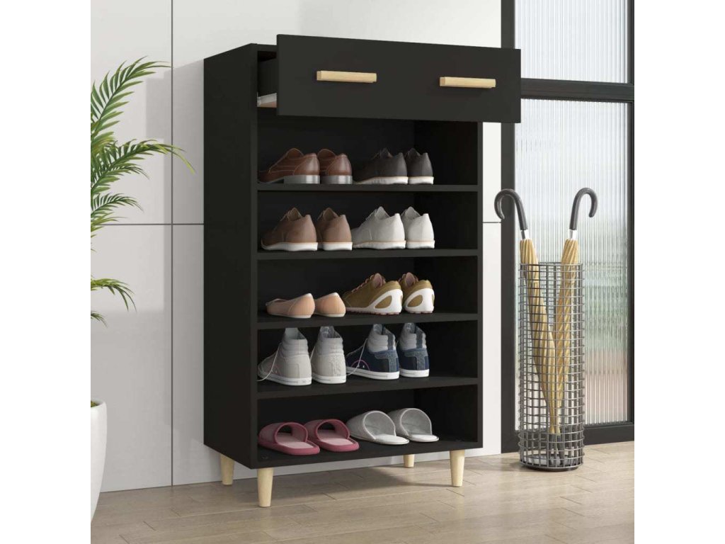 - Dostatek úložného prostoru: Botník má 5 přihrádek a 1 zásuvku, které poskytují dostatek prostoru pro přehledné uspořádání bot. S tímto praktickým botníkem už se nebudete muset zlobit, že máte boty rozházené po celé chodbě.