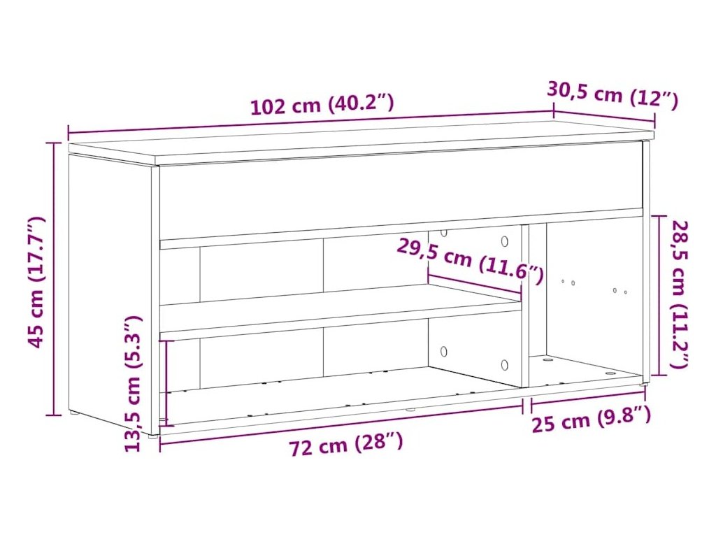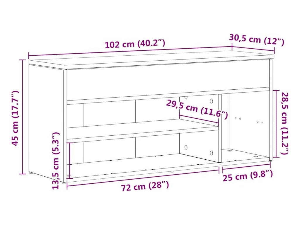 - Rozměry: 102 x 30,5 x 45 cm (D x Š x V)