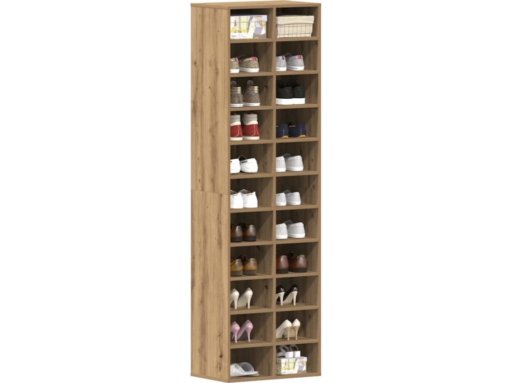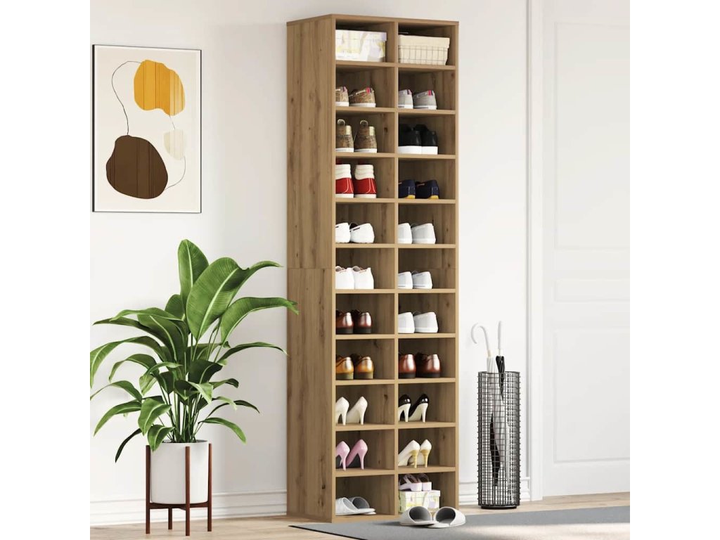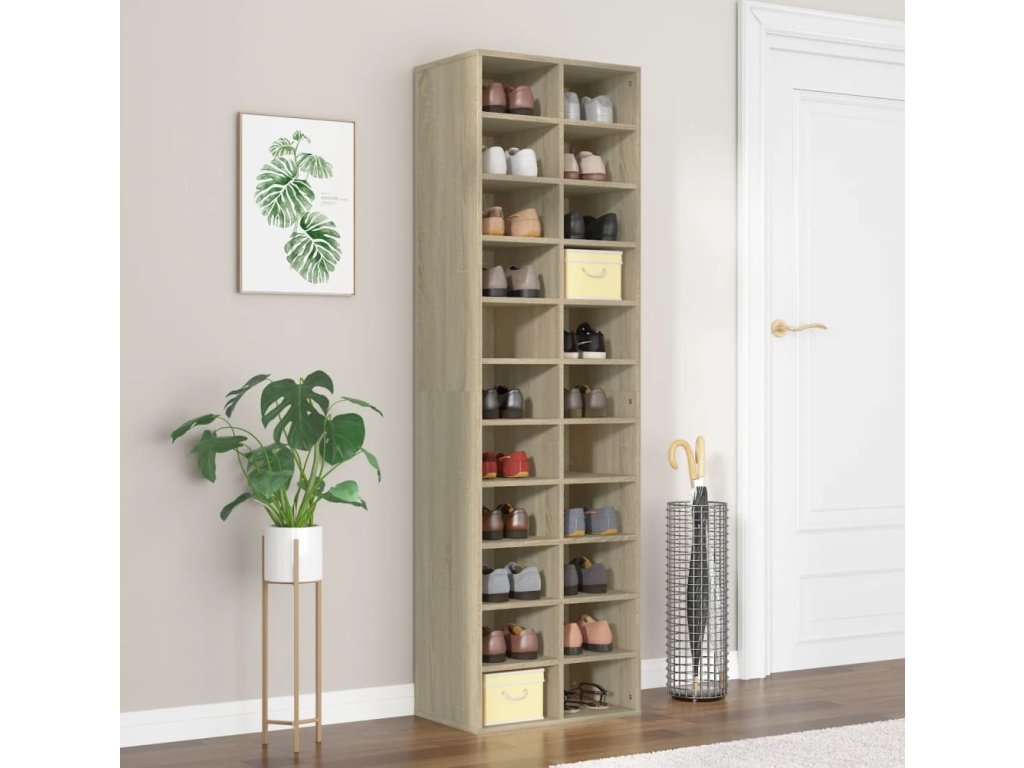 - Dostatek úložného prostoru: Polička na boty poskytuje dostatek úložného prostoru pro různé boty, které jsou přehledně uspořádané a snadno přístupné.