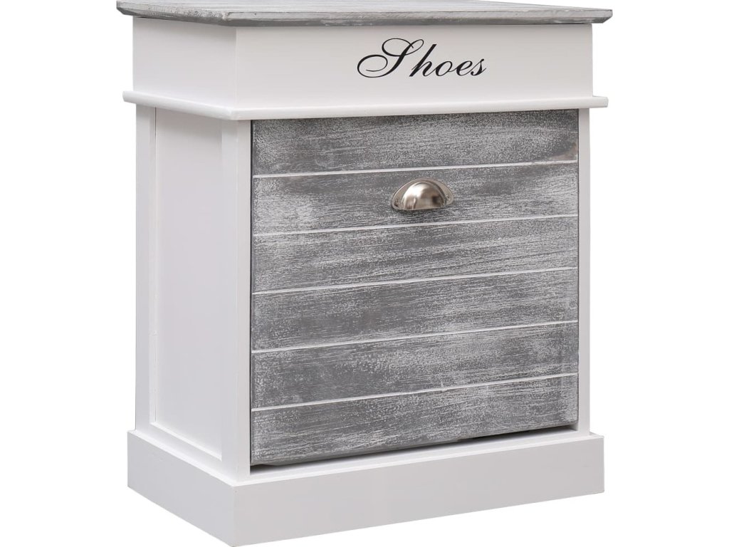 Skříňka je vyrobena ze dřeva pavlovnie, je tedy mimořádně odolná a stabilní. Velká vyklápěcí přihrádka je opatřena příčnými tyčemi, aby vše zůstalo na svém místě. Horní deska botníku se navíc dá odklopit, takže si do horní přihrádky můžete uschovat různé doplňky k obuvi, jako jsou tkaničky, vložky do bot a další maličkosti. Sestavení našeho botníku je snadné.