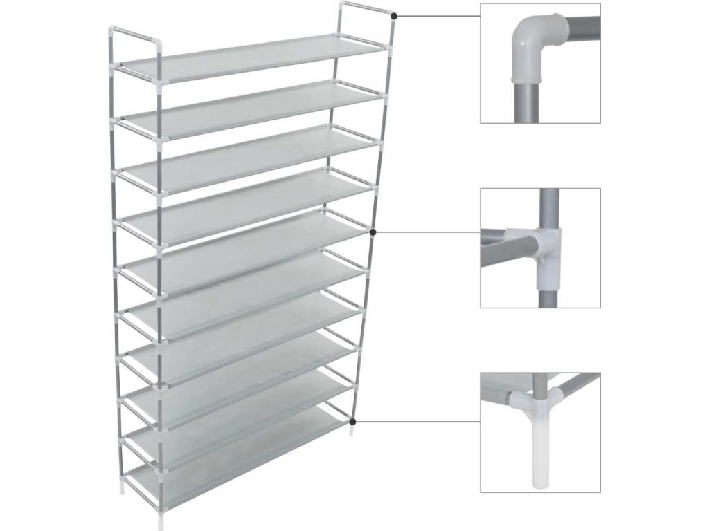 Má trubkový kovový rám, který je lehký, ale přitom robustní, lze jej tedy snadno přemisťovat a zároveň je i velmi stabilní. Má deset prostorných polic, vyrobených z netkané textilie, které vám poskytnou spoustu prostoru pro přehledné ukládání vašich bot tak, aby vám nepřekážely.