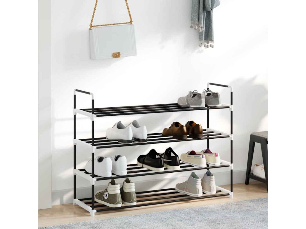 Disponuje lehkým kovovým trubkovým rámem, botník se dá tedy snadno přesouvat, zároveň je ale také velmi odolný. Má čtyři prostorné police, které vám poskytnou spoustu prostoru, kam si můžete uložit vaše boty tak, aby vám nepřekážely.