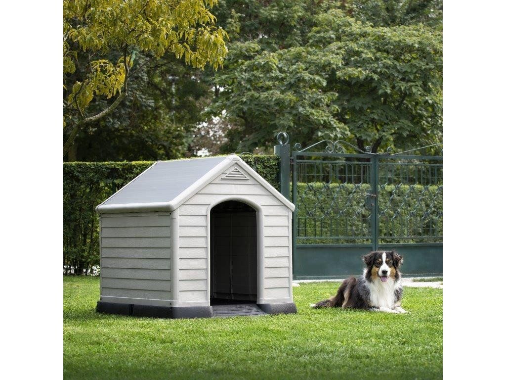 Elegantní psí bouda Curver Dog House v šedém provedení poskytne vašemu čtyřnohému miláčkovi bezpečí, teplo i závětří, takže v ní může pohodlně odpočívat, spát, cupovat svoji oblíbenou hračku, žvýkat kost i hlídat okolí. Použít ji lze v interiéru i v exteriéru po celý rok, neboť má zvýšenou podlahu a je vyrobená z vysoce kvalitního polypropylenu, takže spolehlivě odolá vytížení i veškerým atmosférickým vlivům, jako je vítr, déšť a sníh. Plastový materiál je pak velice lehký, tudíž se dobře přenáší z místa na místo bez větší námahy. Navíc vám ušetří čas s údržbou, kdy ji stačí pouze setřít vlhkým hadrem nebo opláchnout hadicí na vaší zahradě.