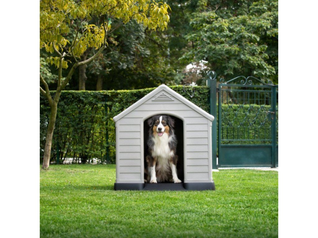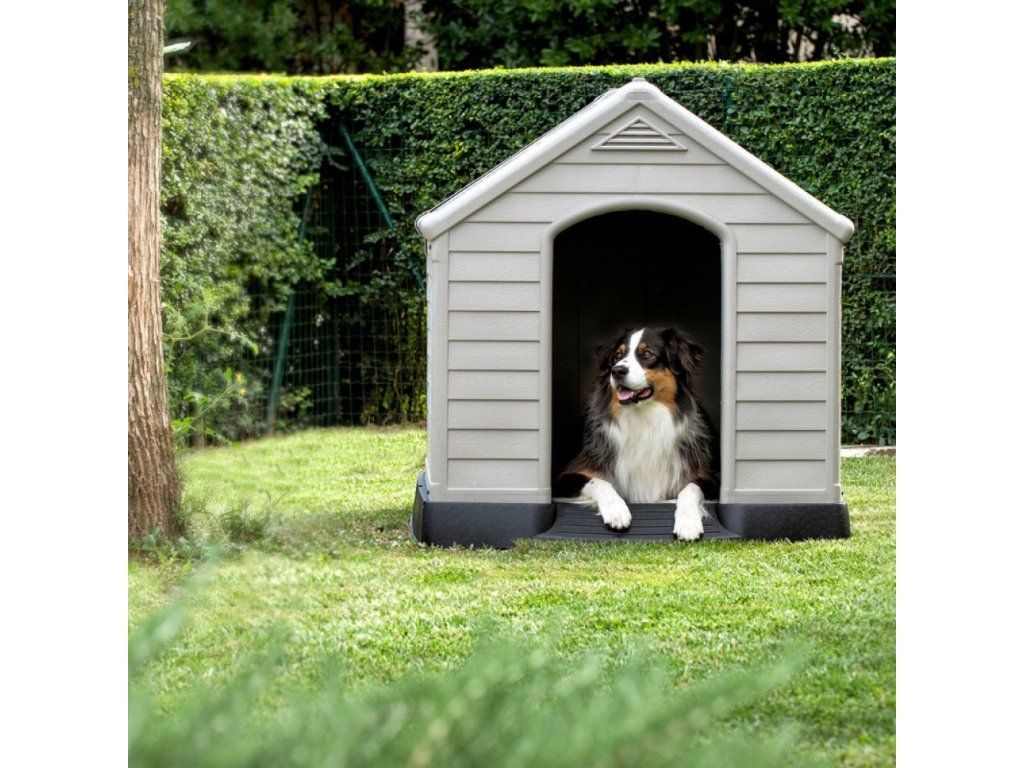 - Psí bouda Curver Dog House má velice elegantní design v decentní šedé barvě