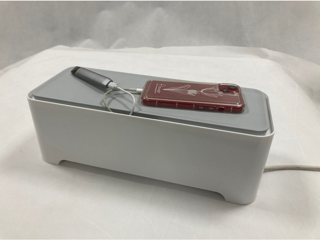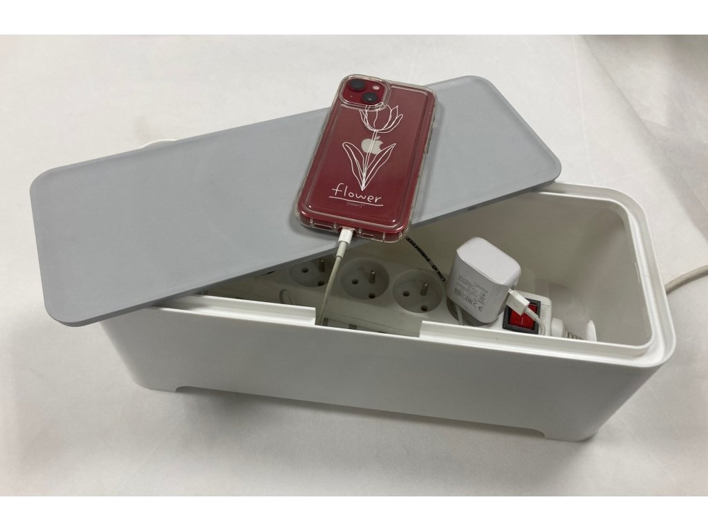Box jednoduše uzavřete pomocí víka. Na něj odložíte svůj mobilní telefon či tablet připojený k zásuvce. Díky boxu snáze uspořádáte všechny kabely, které využíváte v obývacím pokoji, ložnici nebo třeba kuchyni. Najdete pro něj ovšem vhodné využití i v kanceláři či ve vaší firmě. Schovejte nevzhledné kabely na svém stole a vytvořte si optimální podmínky pro svou práci.