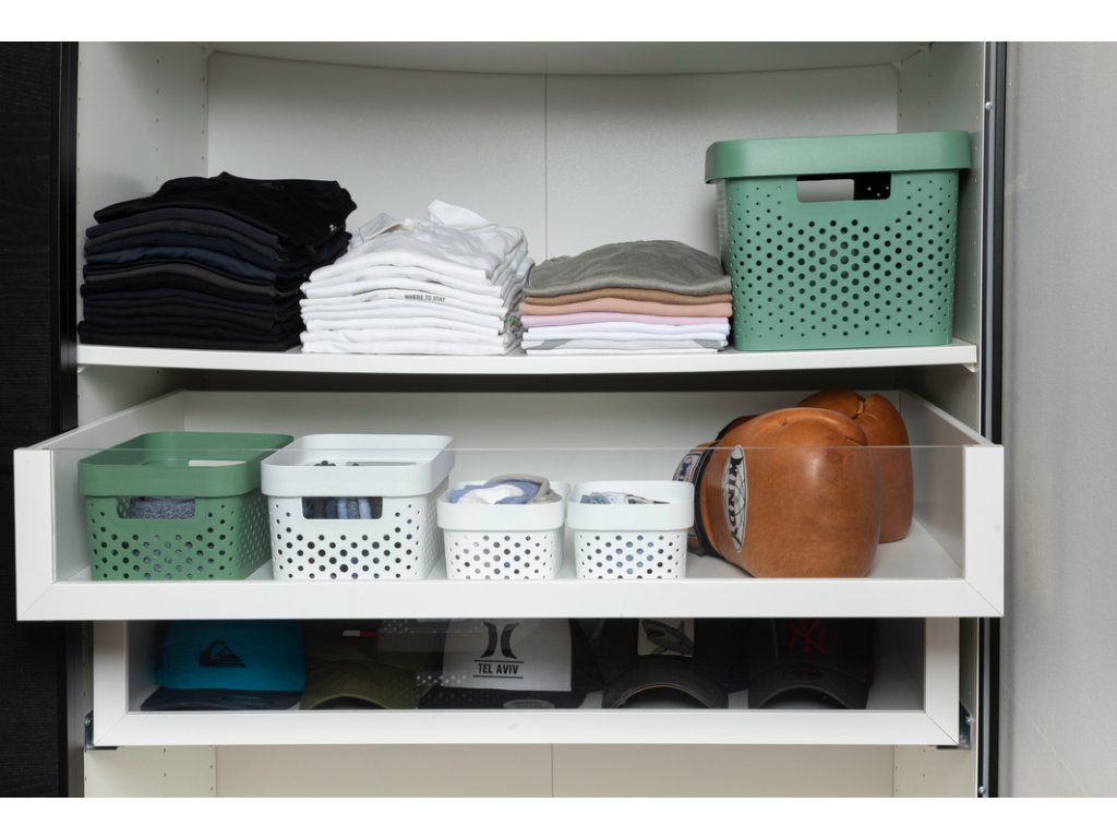 Box Infinity Dots od značky Curver se skvěle hodí do každé domácnosti. Přepravka o objemu 4,5 litru se hodí pro uložení a organizaci vašich věcí. Vložíte do něj menší hračky, hygienické potřeby, knížky, spodní prádlo, ponožky a spoustu dalších podobných předmětů. Pokud si pořídíte více těchto boxů, můžete je stohovat na sebe. Ušetříte tak prostor v místnosti.