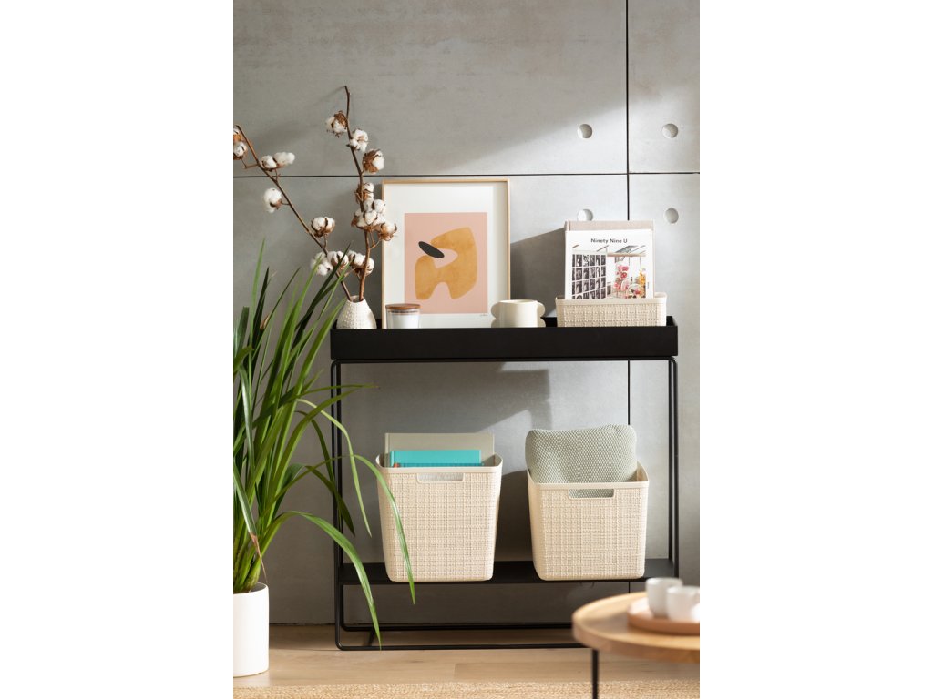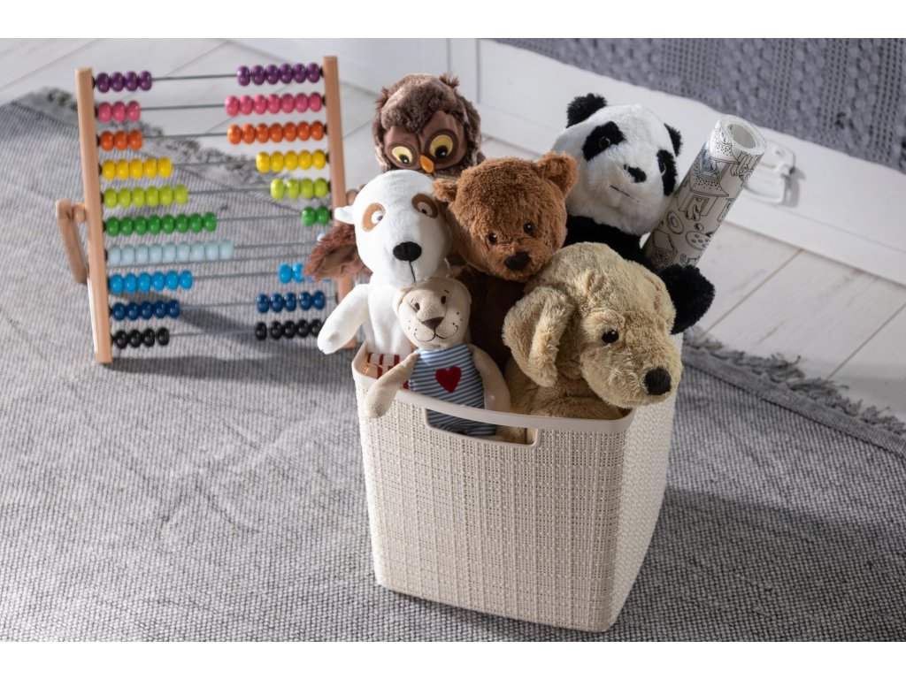 Tento stylový a praktický box se vyrábí ze 100% recyklovaného plastu. Je tedy šetrnější k životnímu prostředí. Jeho provedení připomíná tkaninu a perfektně zapadne do každého prostředí. Doplní vybavení kuchyně, obývacího pokoje, ložnice a klidně i koupelny.