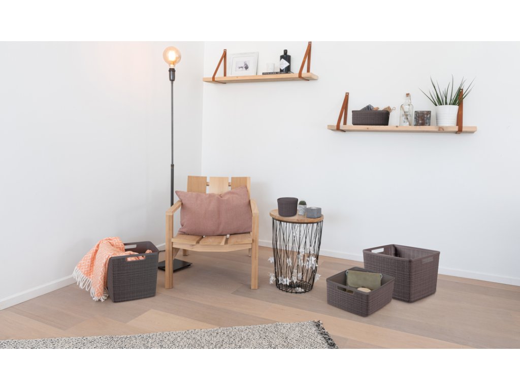 Tento stylový a praktický box se vyrábí ze 100% recyklovaného plastu. Je tedy šetrnější k životnímu prostředí. Jeho provedení připomíná tkaninu a perfektně zapadne do každého prostředí. Doplní vybavení kuchyně, obývacího pokoje, ložnice a klidně i koupelny.