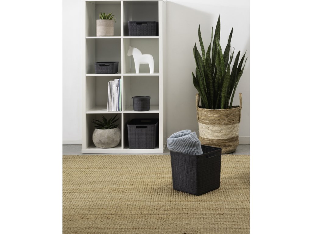 Tento stylový a praktický box se vyrábí ze 100% recyklovaného plastu. Je tedy šetrnější k životnímu prostředí. Jeho provedení připomíná tkaninu a perfektně zapadne do každého prostředí. Doplní vybavení kuchyně, obývacího pokoje, ložnice a klidně i koupelny.