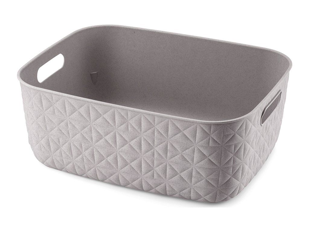 Tento stylový a praktický box se vyrábí ze 70% recyklovaného plastu. Je tedy šetrnější k životnímu prostředí. Zdobí ho jemná textura v podobě trojúhelníků a čtverců, která připomíná prošívanou tkaninu. Doplní vybavení kuchyně, obývacího pokoje, ložnice a klidně i koupelny.