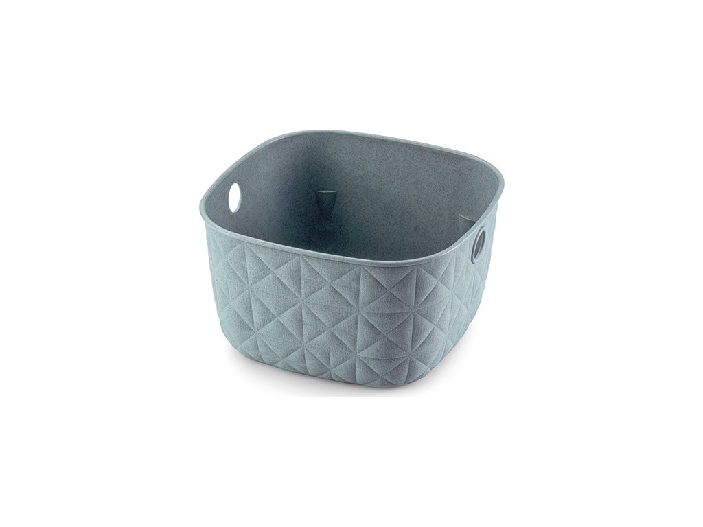 Tento stylový a praktický box se vyrábí ze 70% recyklovaného plastu. Je tedy šetrnější k životnímu prostředí. Zdobí ho jemná textura v podobě trojúhelníků a čtverců, která připomíná prošívanou tkaninu. Doplní vybavení kuchyně, obývacího pokoje, ložnice a klidně i koupelny.