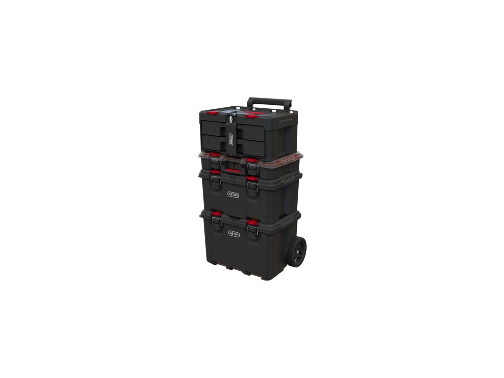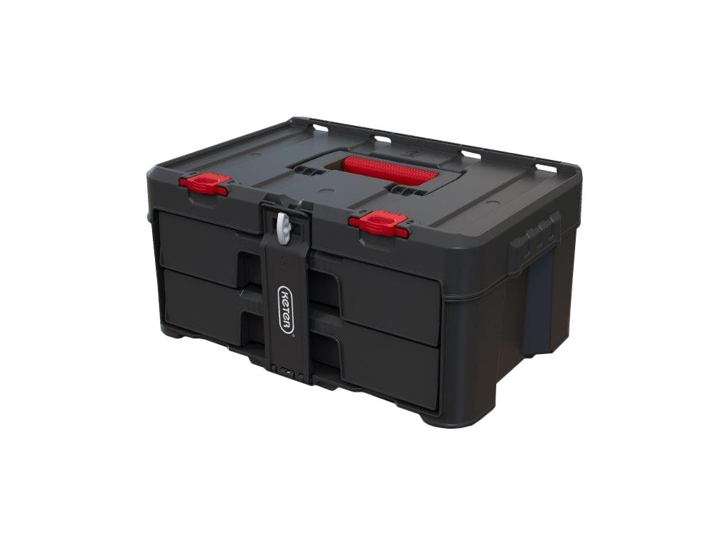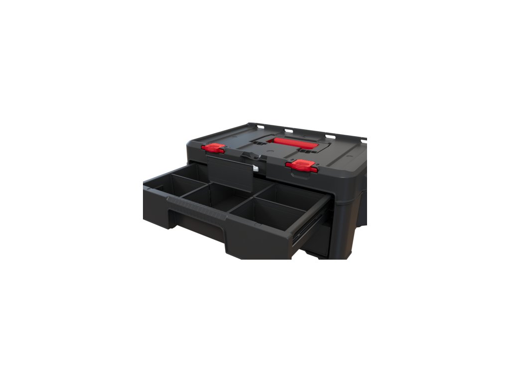 Polykarbonátová uzamykací lišta zajistí pevné uzavření boxu. Jeho obsah se vám tedy nevysype a zůstane v bezpečí. Ergonomická rukojeť a postranní úchyty vám navíc zjednoduší jeho přenášení.