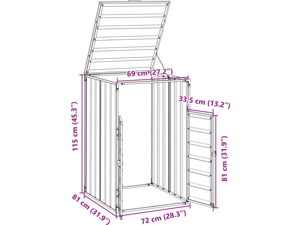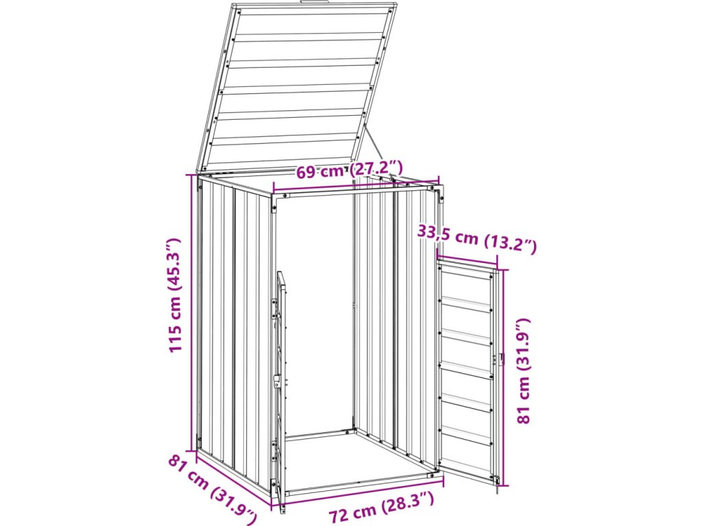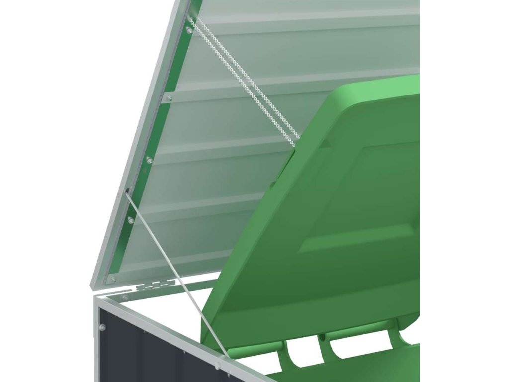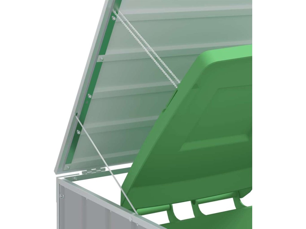 - Praktický mechanismus víka: Víko je opatřeno řetízky, které spojují víko popelnice s víkem boxu, takže se víko popelnice automaticky otevře, když zvednete víko boxu.