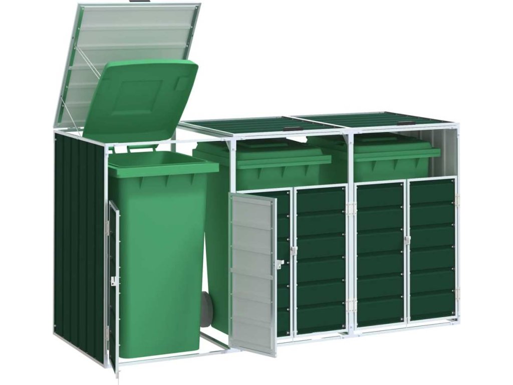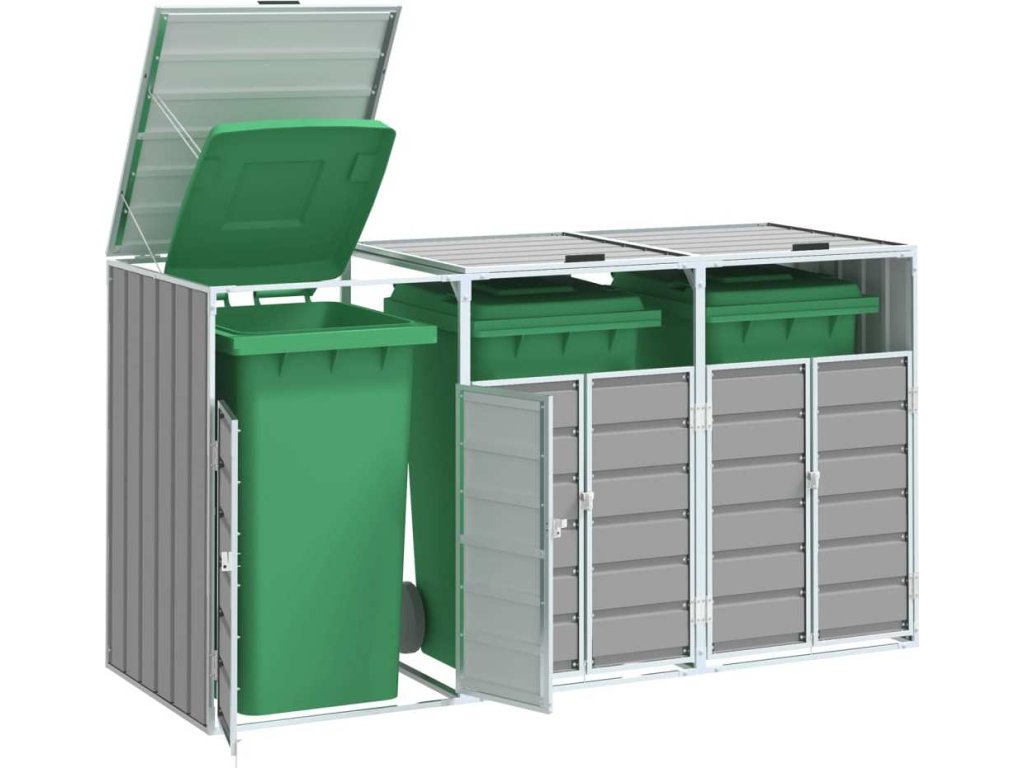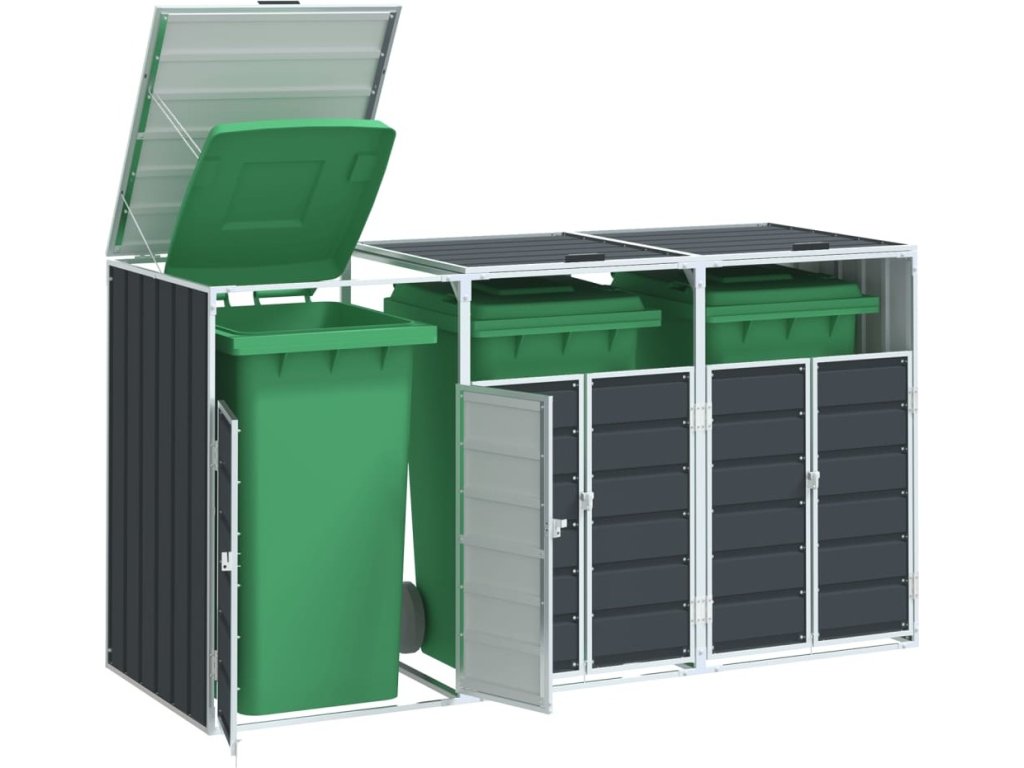 - Flexibilní konstrukce: Tento box na popelnice můžete rozšířit o další boxy přidáním dalších nástavců. Tyto nástavce lze zakoupit v našem obchodě.