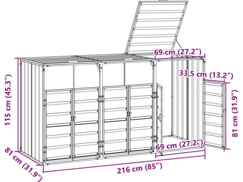 Box na 3 popelnice 216 x 81 x 115 cm ocel [4006182]