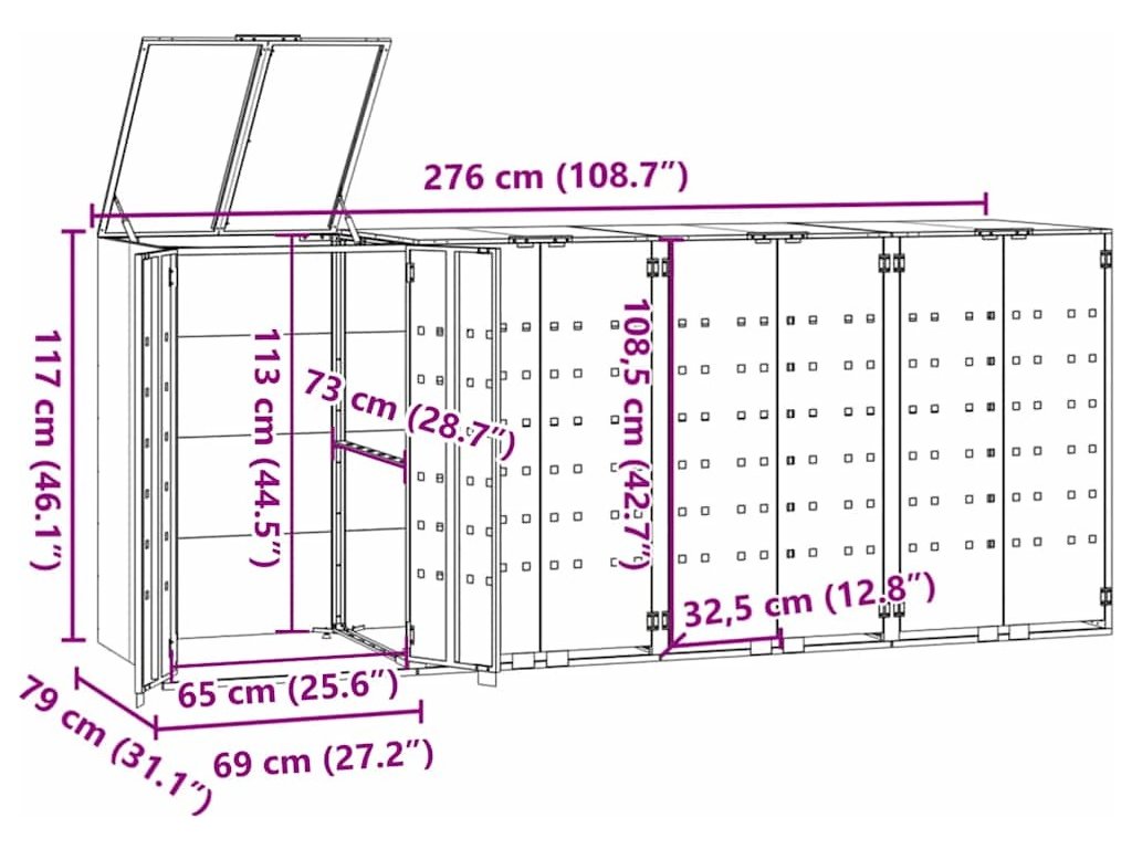 Box na 4 popelnice 276 x 79 x 117 cm ocel [3279989]