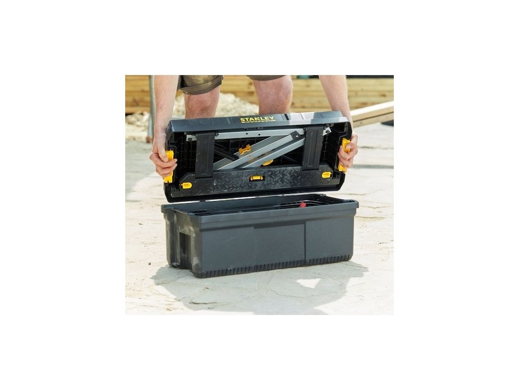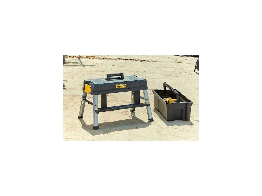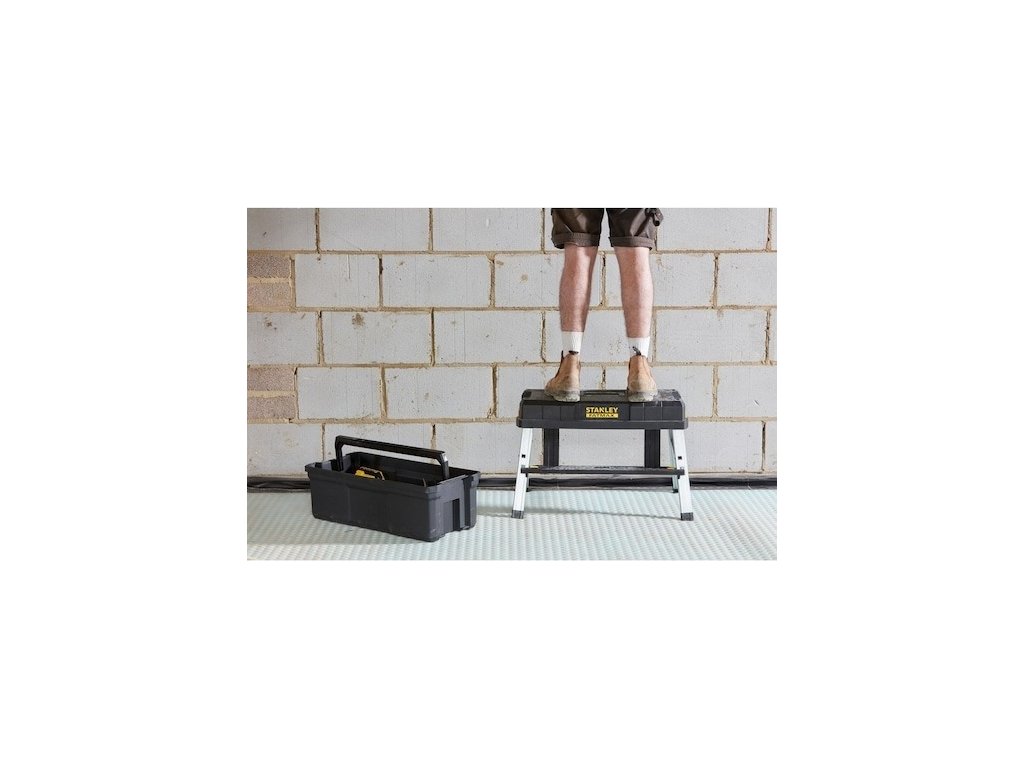 Praktický box na Stanley Fatmax se schůdky je určený na nářadí. Jeho řešení umožní 3 funkce (box na nářadí, stupínek a vyvýšený přepravní box). Box unese až 30 kg.