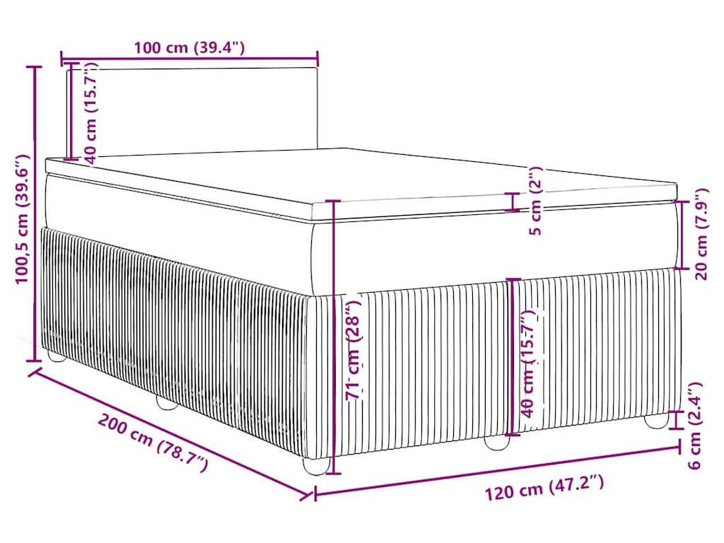 - Rozměry: 120 x 200 x 20 cm (Š x D x V)