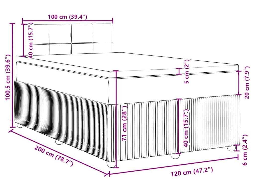 - Rozměry: 120 x 200 x 20 cm (Š x D x V)