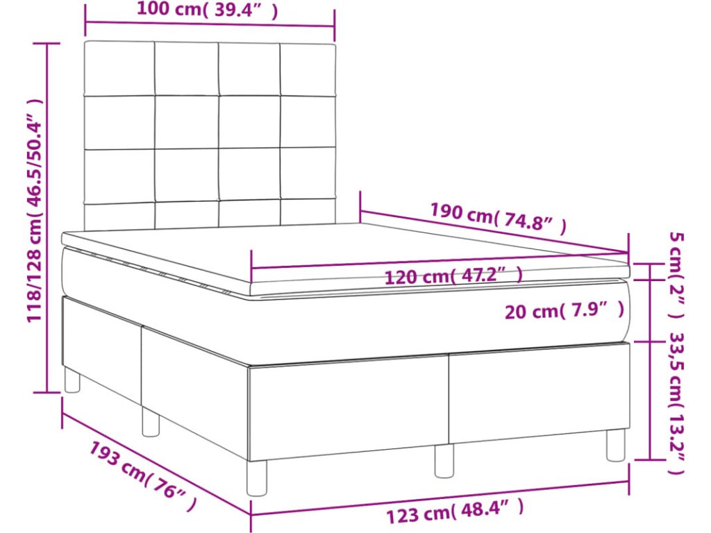 - Rozměry: 120 x 190 x 20 cm (Š x D x V)