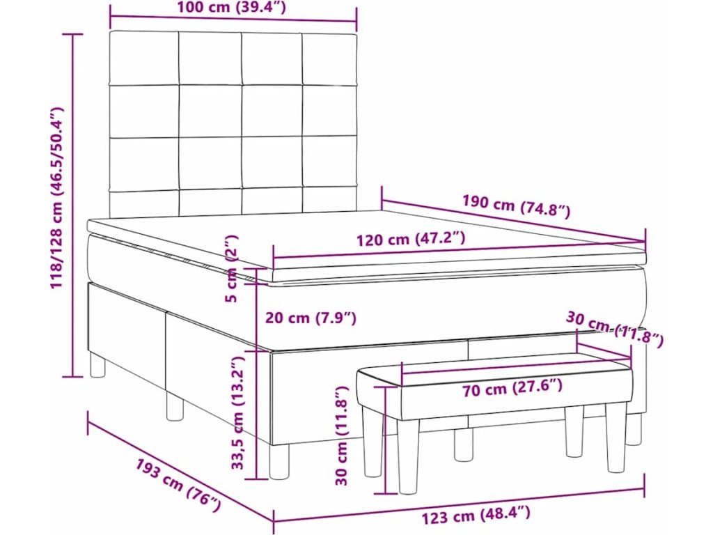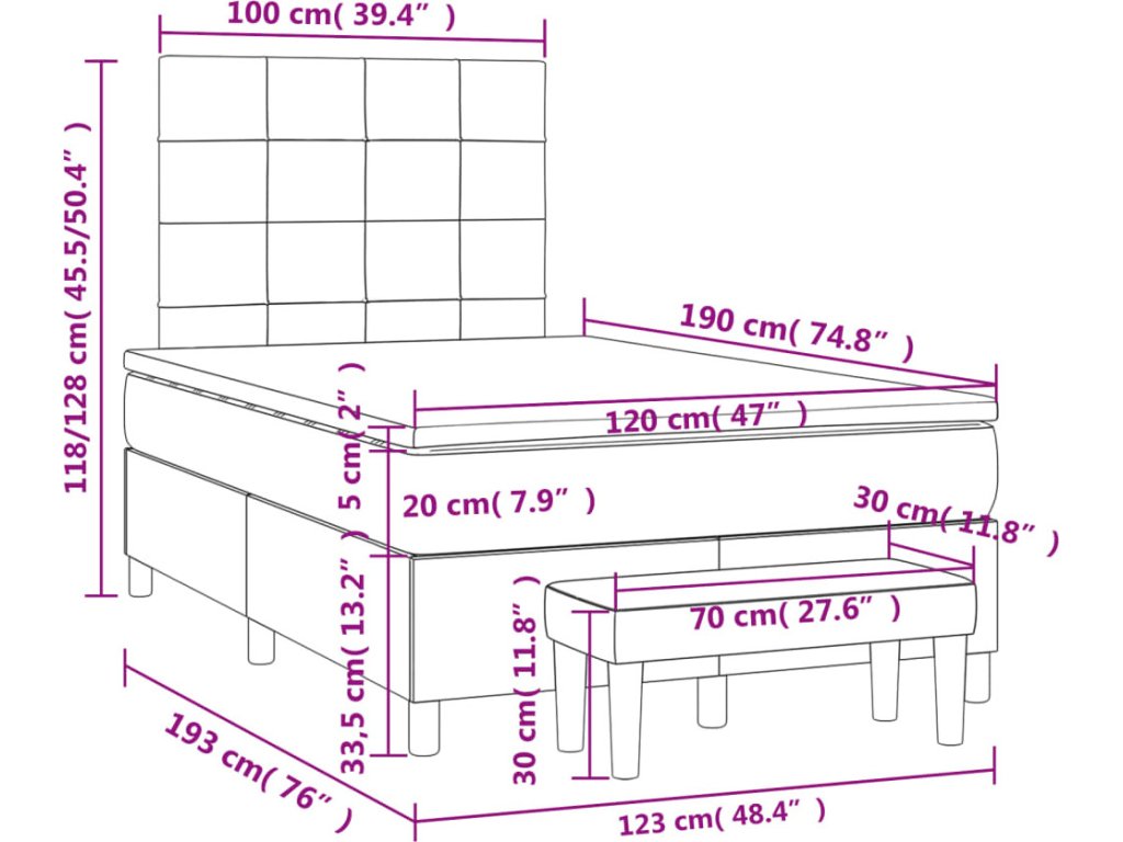 - Rozměry: 120 x 190 x 20 cm (Š x D x V)