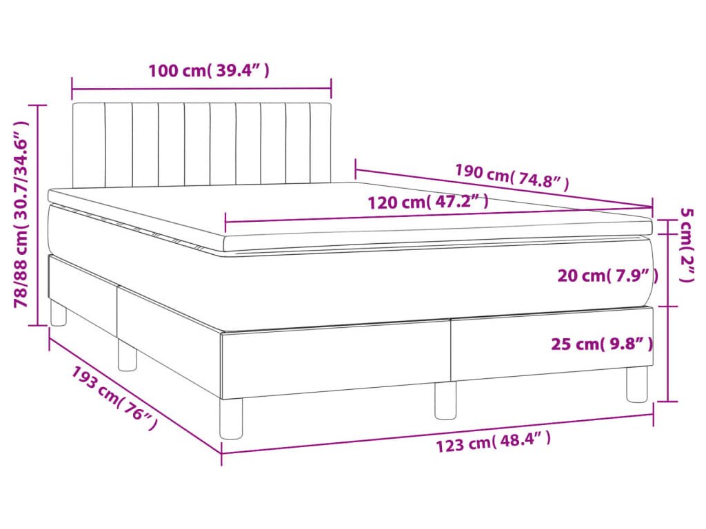 - Rozměry: 120 x 190 x 20 cm (Š x D x V)