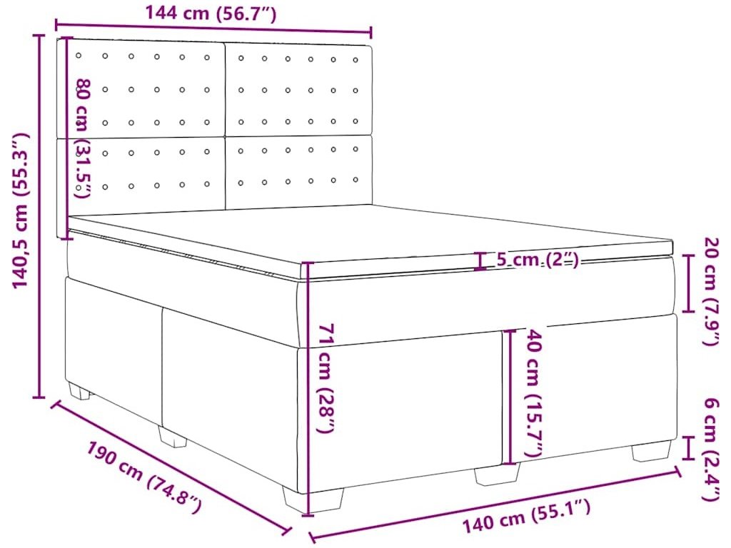 - Rozměry: 140 x 190 x 20 cm (Š x D x V)