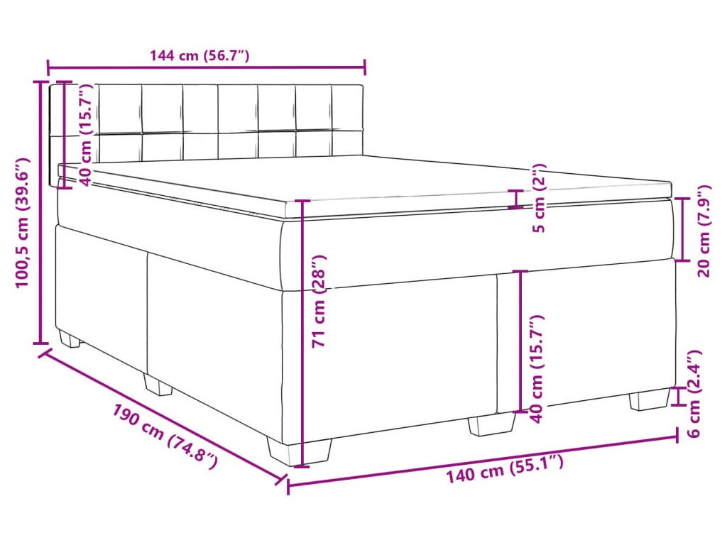 Box spring postel s matrací 140x190 cm samet [3286306]