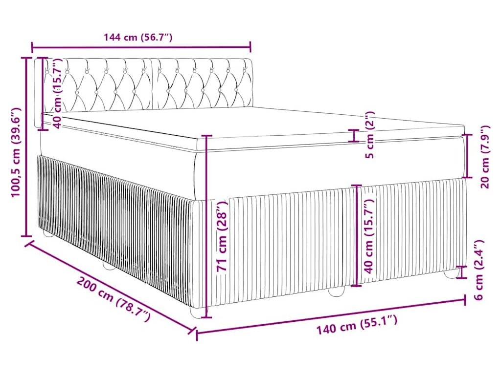 - Rozměry: 140 x 200 x 20 cm (Š x D x V)